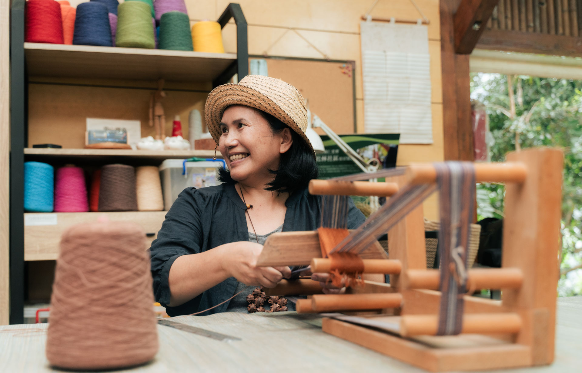 工坊以里山織色為名,意在以創作回應里山倡議追求人與自然和諧關係的想望,也是對目遇成色之大地的感恩與讚歎。